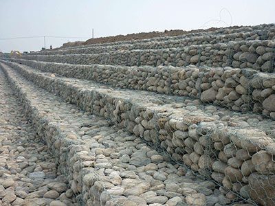 镀锌石笼网是工程技术人员为了实现工程与生态环境相结合而研究出来的一种新式防护结构,高强度镀锌铁丝编制的不同大小的矩形笼子,装满石块应用到景观工程和水利工程的岸坡防护后,它的柔性结构特色可人为设计搭建成和周围围环境相结合的形象景观,例如石笼阶梯,石笼墙等,跟着我国越来越注重生态天然绿色环境,镀锌石笼网的渗透性特色,既可起到净化水的效果,石笼内石块间的缝隙也可人为和天然要素的双重效果下充填泥土和天然草本种子,经过浇水和天然雨水、河水的润泽,植物种子逐渐在石块之间的泥土中生根发芽,茁壮成长,根系牢牢固定石块和泥土。